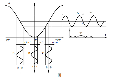 c)向左偏離正交位置時,可得圖 1 曲線 D 與 D′光強信號為某一恒定的光強,迭加一個頻率為 f 的交變光強,見曲線 D′,但交變光強的相位正好與向右偏離正交位置時的交變光強信號相位相反。故鑒別光強信號中 f 分量的交變光強是否為零?删_判斷起偏器與檢偏器是否處于正交位置,鑒別 f 分量交變光強的相位,可判斷檢偏器是左還是右偏離正交位置。