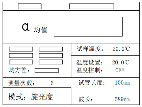 a) 測旋光度時,模式選 1,測量內容顯示旋光度,數(shù)據(jù)欄顯示α及α均值,需要在設置