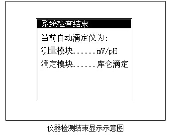 儀器開機后,首先開始自檢,之后即顯示“ZDJ-5 自動滴定儀”字樣,稍等,儀器開始檢測連接的滴定模塊和測量模塊類型,檢測結(jié)束,顯示如下。
