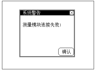 如果用戶連接錯誤或者由于儀器連線或者儀器本身等原因?qū)е逻B接失敗時,儀器會自動提醒用戶,顯示如下。圖示即為測量模塊連接失敗時的顯示示意圖。此時,用戶應(yīng)斷開電源,仔細檢查連線是否正確,如果連接正確,則可能是儀器本身的問題,需要與我公司聯(lián)系以取得幫助。當然,用戶也可按“確認”鍵繼續(xù)操作下去,但儀器會自動限制用戶的某些操作,用戶自然無法使用全部的功能。