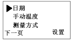 當光標“▶”指測量方式設置參數(shù)項時,按“確定”鍵,儀器顯示如下。用戶通過“▲”或“▼”鍵移動光標“▶”指向所需測量方式。