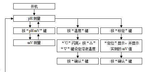 (1) 打開電源開關(guān),儀器進(jìn)入pH測(cè)量狀態(tài);按“pH\mV”鍵,使儀器進(jìn)入mV測(cè)量即可。