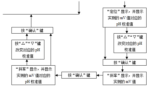 c) 按“溫度”鍵,使儀器進(jìn)入溶液溫度狀態(tài)(此時(shí)℃溫度單位指示燈閃亮),按“△”鍵或“▽”鍵調(diào)節(jié)溫度顯示數(shù)值上升或下降,使溫度顯示值和被測(cè)溶液溫度值一致,然后按“確認(rèn)”鍵,儀器確定溶液溫度后回到pH測(cè)量狀態(tài)。