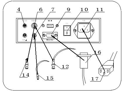 (8)USB插座; (9)RS-232插座;