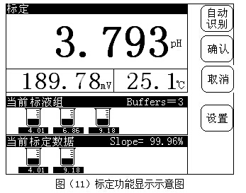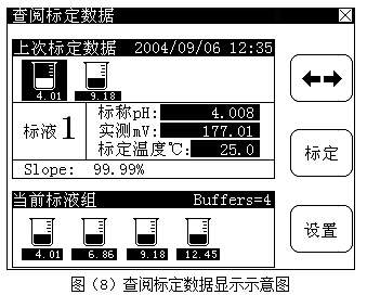 d) 儀器可以選擇多種pH標(biāo)準(zhǔn)緩沖溶液標(biāo)定儀器(提供10種標(biāo)準(zhǔn)溶液),允許用戶建立自己的標(biāo)液組;儀器具有一點標(biāo)定、二點標(biāo)定和多點標(biāo)定(最多5點)功能;