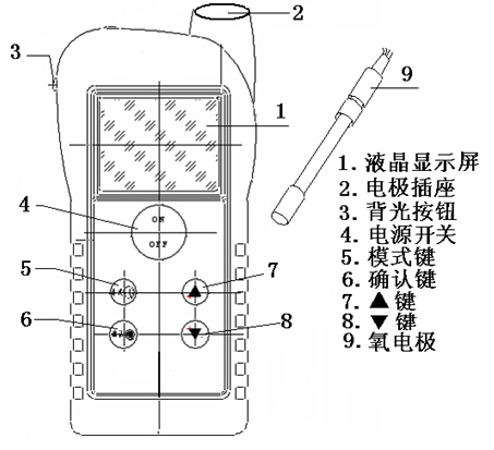 “確認(rèn)”鍵:當(dāng)儀器處于“零氧校準(zhǔn)/滿度校準(zhǔn)/鹽度設(shè)置”工作狀態(tài)時(shí),按下此鍵,貯存儀器當(dāng)前工作狀態(tài)測量值。