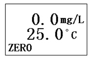 將溶解氧電極放入5%的新鮮配制的亞硫酸鈉溶液中,在儀器處于溶解氧測量工作狀態(tài)下,按“模式”鍵,儀器即進(jìn)入“零氧校準(zhǔn)”工作狀態(tài),待讀數(shù)穩(wěn)定后,按“確定”鍵,貯存電極當(dāng)前的零氧值,零氧校準(zhǔn)結(jié)束。此時(shí),儀器還處于“零氧校準(zhǔn)”工作狀態(tài)。再按“模式”鍵,儀器進(jìn)入“滿度校準(zhǔn)”工作狀態(tài)。零氧校準(zhǔn)顯示界面如下:
