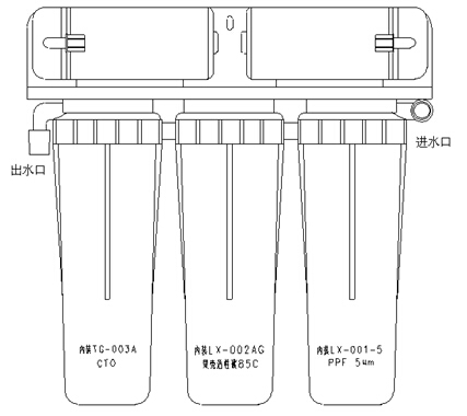 將新濾芯放入筒體內(nèi)。從右往左依次為5微米PP濾芯、果殼活性炭和CTO濾芯。順序不可搞錯(cuò)