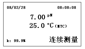 按下“ON/OFF”鍵,儀器自動(dòng)進(jìn)入pN測(cè)量狀態(tài)。儀器顯示如下界面: