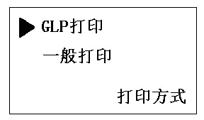 打印方式設(shè)置:當(dāng)光標(biāo)“▶”指打印方式設(shè)置參數(shù)項(xiàng)時(shí),按“確定”鍵,儀器顯示如下。用戶通過(guò)“▲”或“▼”鍵移動(dòng)光標(biāo)“▶”指向所需打印方式(GLP打印或一般打。。再按“確定”鍵予以確認(rèn),儀器自動(dòng)退出打印方式設(shè)置狀態(tài)。