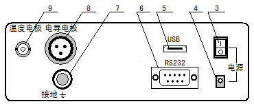 (7)接地端;(8)電導(dǎo)電極插座;(9)溫度電極插座。