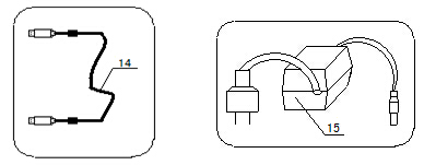 (14)USB通訊線 (15)9V,800mA穩(wěn)壓電源(內(nèi)正外負);