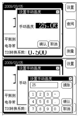 “設(shè)置手動溫度”:如果儀器不接溫度傳感器,可以使用手動溫度值;