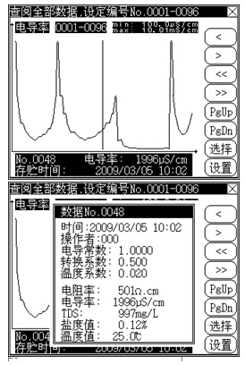 按“查閱”鍵可查閱電導(dǎo)測量參數(shù)等,具體參見查閱電導(dǎo)測量參數(shù)章節(jié)。