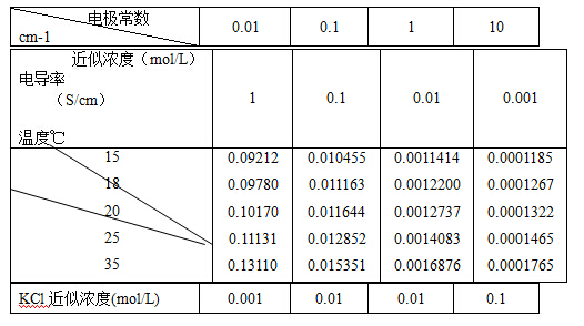 1.測定電極常數(shù)的KCL標(biāo)準(zhǔn)濃度如下: