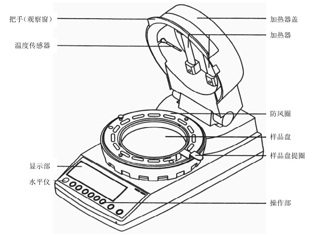 一、MOC-120H主機(jī)各部說(shuō)明 了解產(chǎn)品報(bào)價(jià)請(qǐng)點(diǎn)擊:電子式水分計(jì)MOC-120H