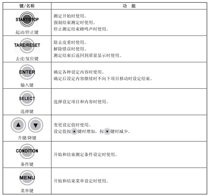 操作部的各鍵具有如下功能: