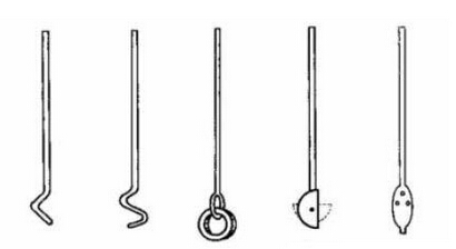 攪拌所用的攪拌棒通常由玻璃棒制成,式樣很多,常用的見下圖。其中(1)、(2)兩種可以容易地用玻棒彎制。(3)、(4)較難制。其優(yōu)點(diǎn)是可以伸人狹頸的瓶中,且攪拌效果較好。(5)為筒形攪拌棒,適用于兩相不混溶的體系,其優(yōu)點(diǎn)是攪拌平穩(wěn),攪拌效果好。