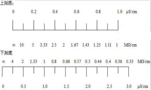 4.2.10上刻度、下刻度的電導率與電阻率的對照表: