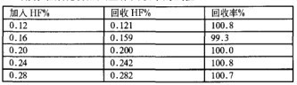 從上述試驗(yàn)可以得出結(jié)論,硝酸的加入對于氫氟酸濃度的測定沒有影響。