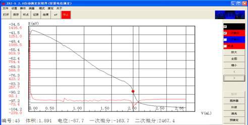 用移液管移取1ml牛奶于250ml錐形瓶中,將移液管清洗幾次,將清洗液也導入錐形瓶中,加水至50ml,加入10mlNH3-NH4CL緩沖溶液。用EDTA溶液在自動電位滴定儀上滴定至電位突躍,記錄所消耗的EDTA溶液的體積。