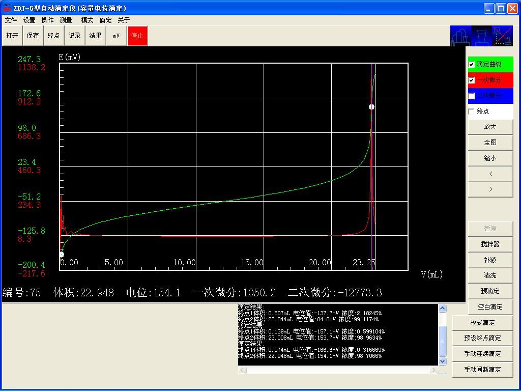 終點(diǎn)電位:154.1mv 終點(diǎn)體積:22.948ml
