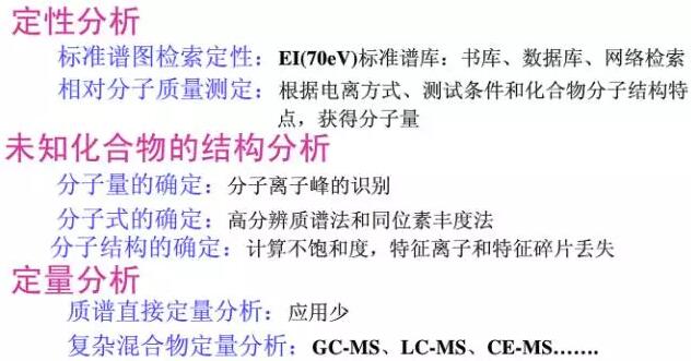 質(zhì)譜:定性、定量,可以推測物質(zhì)的組成;