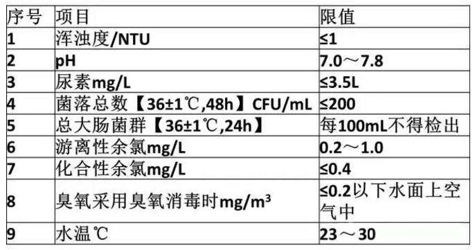 表1游泳池池水水質(zhì)常規(guī)檢驗項目及限值