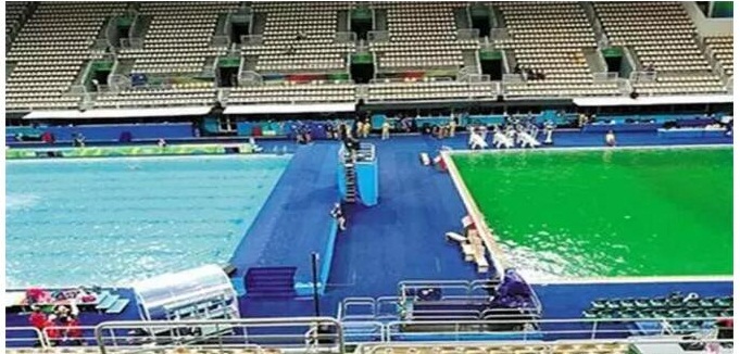 據(jù)德國《焦點》周刊網(wǎng)站的相關(guān)報道,8月8日,里約泳池的水還是淡藍的,而當觀眾和運動員在9日為女子雙人10米跳臺決賽作準備時,他們看到水池變成綠色。露天場館里并列的兩個池子,水球和花樣游泳池池水碧藍,藍得像藍寶石;而跳水池卻一夜間陡然變色,綠得像翡翠。