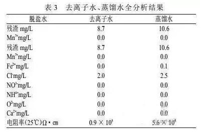 用離子交換法制得的化驗(yàn)用水,常稱去離子水或離子交換水。出離子水質(zhì)高于蒸餾水塔蒸餾出的蒸餾水水質(zhì),僅含0.01mg/L的溶解型溶質(zhì)(水的電阻率為9.0·㎝)。詳見(表3)所列。