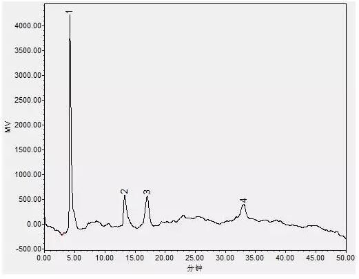 (2)相同濃度下4種組分的出峰響應(yīng)值相差較大,配制混合標準溶液時可以依據(jù)樣品中的含量適當降低組分1或者增加其它組分的濃度;