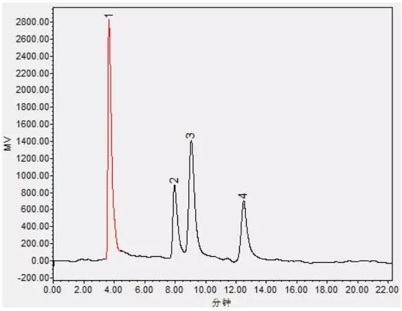 從圖中可以看出,雖然4種糖的混合標準溶液色譜圖中對應(yīng)出現(xiàn)4個色譜峰,但是卻存在以下幾個問題: