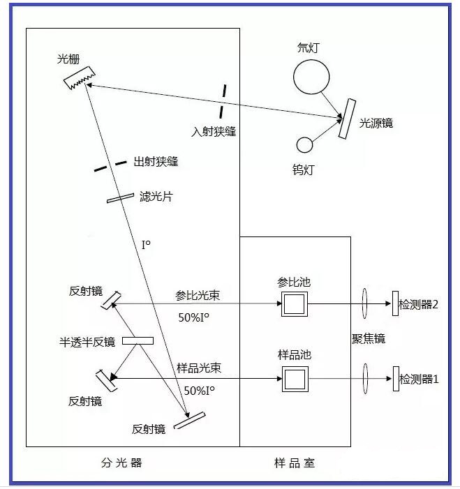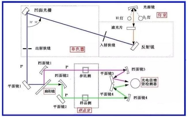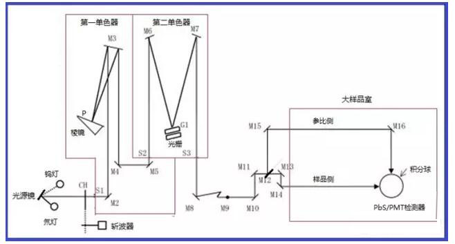 圖-7 雙單色器雙光束單檢測器型光路結(jié)構(gòu)示意圖