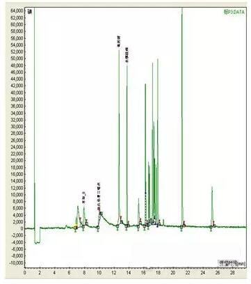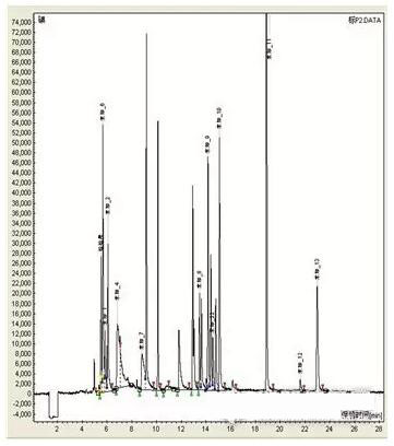 我們對上面的程序升溫條件進行了優(yōu)化,柱溫由100℃降到80℃,程序升溫:80℃保持1min,8℃/min升到250℃,保持6.0min,共28.25min.