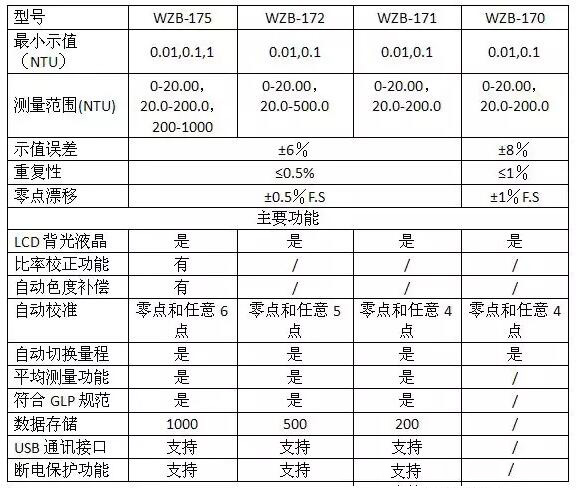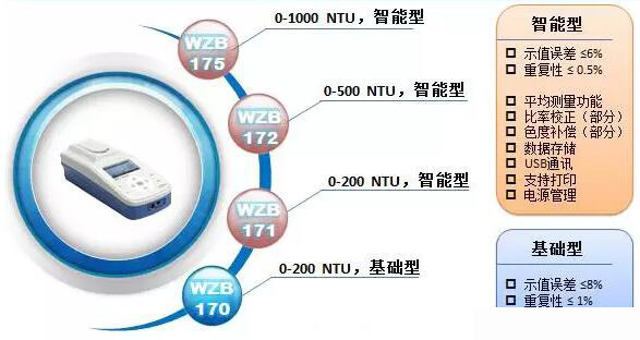 濁度是一種光學(xué)效應(yīng),它表現(xiàn)出光線透過水層時受到的阻礙的程度。濁度是天然水和飲用水等水質(zhì)中的一項重要的水質(zhì)指標,也是供水水質(zhì)生產(chǎn)運行、輸送等評估、控制水質(zhì)的重要技術(shù)參數(shù)。濁度由濁度儀檢測(包含實驗室和便攜式濁度計),上海儀電科學(xué)儀器股份有限公司推出的便攜式濁度儀系列產(chǎn)品,根據(jù)散射-透射光測量原理進行設(shè)計,采用LED穩(wěn)定的光源,分別符合ISO7027標準;具有自動色度補償和量程自動切換功能;多種測量模式,滿足不同特性樣品的測量和精度要求。目前便攜式濁度儀的型號主要有WZB-175型、WZB-172型、WZB-171和WZB-170型。