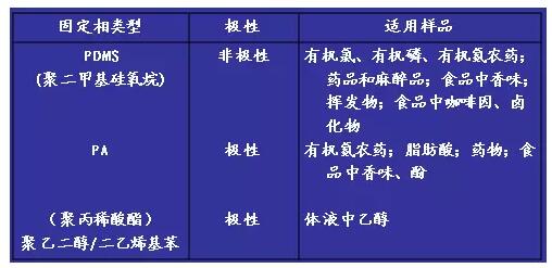 固相微萃取的使用關鍵在于“纖維頭的選擇”,這種情況類似于色譜柱的選擇,主要根據(jù)分析對象的分子量和極性。