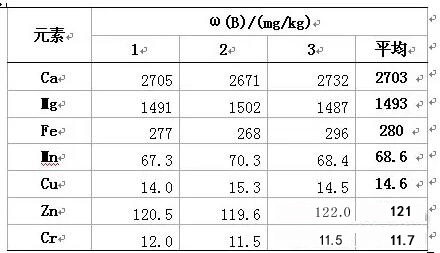 從結(jié)果可以看出,香菇中Ca含量最高,Cr含量最低。