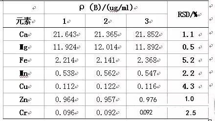 實(shí)驗(yàn)結(jié)果表明,上述各元素的精密度為0.5%-5.2%之間。