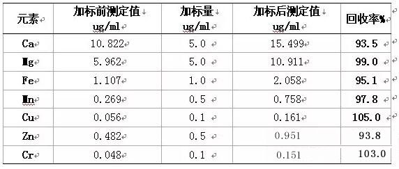 實(shí)驗(yàn)結(jié)果表明,上述元素的加標(biāo)回收率在93.8%-105.0%之間。