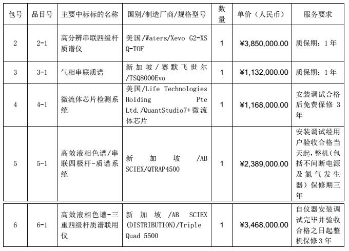 2017年2月14日,國家質(zhì)檢總局2016年提升食品質(zhì)量安全檢(監(jiān))測能力建設(shè)專項(xiàng)120萬元以上儀器設(shè)備采購項(xiàng)目已公布中標(biāo)結(jié)果,總中標(biāo)金額達(dá)1200.7萬元,中標(biāo)產(chǎn)品涉及質(zhì)譜等高端儀器。