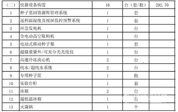 項(xiàng)目建設(shè)地點(diǎn)位于海南省儋州市寶島新村,主要建設(shè)內(nèi)容為新建中期種子備份庫(kù)1224平方米,道路與場(chǎng)地硬化950平方米,以及照明、給排水、消防等配套室內(nèi)外工程;購(gòu)置儀器設(shè)備16臺(tái)(套/批)?偼顿Y966萬(wàn)元,全部為中央預(yù)算內(nèi)投資。項(xiàng)目建設(shè)期為2年。
