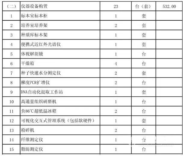 國(guó)家牧草種質(zhì)資源中期庫(kù)建設(shè)項(xiàng)目的建設(shè)地點(diǎn)位于北京市順義區(qū)北小營(yíng)鎮(zhèn),主要建設(shè)內(nèi)容為改造低溫庫(kù)組培室等380平方米,購(gòu)置便攜式近紅外光譜儀、體視解剖鏡等儀器設(shè)備23臺(tái)(套),總投資815萬(wàn)元,全部為中央預(yù)算內(nèi)投資(詳見(jiàn)附件),項(xiàng)目建設(shè)期2年。