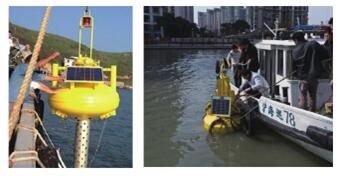 浮標(biāo)站可用于地表水、污水口、海洋等不同水體的水質(zhì)在線監(jiān)測(cè),可監(jiān)測(cè)包括溶解氧、pH、ORP(氧化還原電位)、電導(dǎo)率(鹽度、總?cè)芙夤腆w、電阻)、溫度、濁度、葉綠素a、藍(lán)綠藻、銨/氨離子、硝酸根離子、氯離子等在內(nèi)的多種參數(shù)。浮標(biāo)站采用電池或太陽能供電,通過無線通訊方式實(shí)現(xiàn)數(shù)據(jù)上傳。