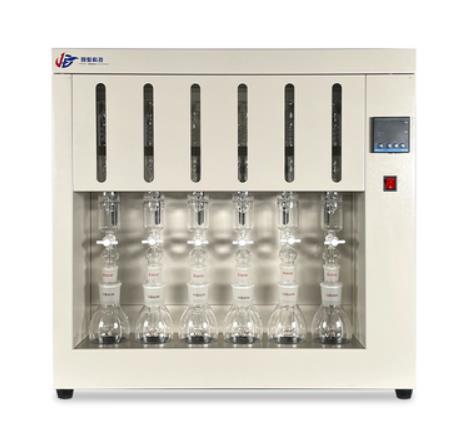 3.連接好燒瓶、測定儀、回流冷凝管,接通冷凝水,加熱。歡騰后,溶劑的蒸氣從燒瓶進到冷凝管中,冷凝后的溶劑回流到濾紙筒中,浸取樣品。溶劑在測定儀內(nèi)到達必定的高度時,就帶著所提取的物質(zhì)一起從側(cè)面的虹吸管流入燒瓶中。溶劑就這樣在儀器內(nèi)循環(huán)活動,把所要提取的物質(zhì)會集到下面的燒瓶內(nèi)。